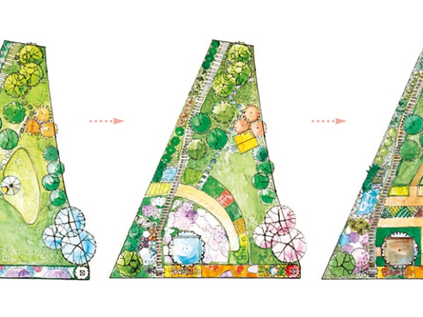 같은 공간이라도 주인의 취향과 디자이너의 기호에 따라 다양한 디자인이 나올 수 있다. 여기에 예산과 작업 여건, 지형 등 환경에 따르는 조건들이 디자인을 결정한다. 4개의 사례를 통해 정원 디자인의 과정과 그 필요성을 엿본다. 글 강혜주 구성 이세정 모든 조건에 부합하는 가장 적합한 디자인은 하나로 수렴된다. 최종의 디자인을 위해 다양한 요인들을 분석하고 의견을 수렴하는 것이 디자인 과정이다. 미켈란젤로는 “조각가란 그 돌 안에 잠들어 있는 고유한 형상을 깨워 내는 사람”이라고 말했다. 취하고 버리고 다시 뒤집는 과정에서 가장 적합한 디자인이 완성된다. 좋은 디자인은 공간의 가치를 살린다. 이번 지면에서는 공간별로 다른 디자인이 어떻게 도출되고 그 느낌은 어떻게 다른지 실피면서 정원 디자인의 필요성을 깨달아 본다. 유치원 생태 정원 ▲ 좌측 도면은 내추럴한 경사지를 그대로 살린 반면, 우측으로 갈수록 전체 공간을 활용한 동선을 갖는다. 유치원 앞 경사지에 자연학습을 위한 생태정원을 3가지로 디자인한 경우다. 경계가 명확하지 않은 자연스런 분위기에서 계단식으로 공간을 활용한다. 숲속 오솔길을 따라 인디안 텐트와 트리하우스, 텃밭과 연못이 이어진다. 사람마다 기호와 선호가 다르고 정원을 만드는 과정과 금액도 차이가 난다. 디자인 의뢰 시, 혹은 정원을 만들고자 할 때 예산을 미리 공개하고 디자인 내용을 잡는 것이 이상적이다. 본인이 직접 하는 경우라도 예산 안에서 사용처를 지혜롭게 분배하는 것이 좋다. 펜트하우스 테라스 정원 경기도 광교 어느 펜트하우스의 정원이다. 의뢰인은 정원에 온실을 두고자 했다. 마침 입주 시기가 연초라 복주머니로 콘셉트를 잡았다. A안은 온실과 마당이 같은 패턴이 되도록 디자인하고 B안은 온실 안에 복주머니 패턴을 넣은 것으로 디자인했다. 좌우 온실의 채광량이 달라 식재 내용도 달라진다. ▲ A는 야외 공간에 쉼터를 넓게 확보할 수 있고, 테라스에서 마당으로 자유롭게 열린 동선을 갖는다. B는 테라스, 온실, 마당이 분리되어 있으나 채광이 좋아 허브류 식재도 가능하다. 남해 펜션 정원 ▲ 바다를 조망하는 터에 무덤 3기가 존재하는 솔숲을 곁에 두었다. 삶과 죽음이라는 철학적 의미와 자연의 아름다움이 공존하는 것이 중요한 디자인 콘셉트다. 버블스케치 단계의 도면이다.의뢰인은 남해에 3층짜리 펜션을 운영하고 있다. 그는 기존 객실만으로는 관리인을 두고 경영하기에 어려움이 있어 객실을 늘리고자 했다. A는 현 건물동을 빼고 작은 펜션 4동을 지을 경우, B는 현재의 동에 자연적 환경을 살려 정원을 만드는 두 가지 시안이다. 객실이 늘어나면 정원 녹지 면적이 줄기 때문에 자연 지형을 이용해서 옥상정원 형태로 녹색 공간을 살리고자 했다. 대학교 정문 정원 리모델링 ▲ A는 대학의 번영과 발전을 태양빛과 원형 반복패턴으로 상징화했다. 반면, B는 개교 40주년을 기념하기 위해 1974라는 숫자를 콘셉트로 디자인하고 오대양을 상징하는 5개의 수로를 한 곳에서 모이게 했다. 세계를 무대로 많은 것을 담아내고 뻗어가라는 염원을 디자인에 담았다. 천안에 있는 한 대학의 정문 쪽 정원 리모델링이다. 좌측은 현재 있는 연못 형태를 살려서 디자인 한 경우고 우측은 전면 리모델링한 시안이다. 시공 금액 면에서는 큰 차이가 없지만 공간에 대한 느낌과 동선의 차이는 확연히 다르게 느껴진다. 가든디자이너·보타닉아티스트 강혜주 서울여자대학교 미술대학 서양화과를 졸업하고 화가로 활동하던 중, 타샤와 탐 스튜어트 스미스의 정원에 마음을 빼앗겨 본격적인 정원 디자이너의 길로 들어섰다. 꽃을 주제로 한 4번의 개인전을 열고, 주택과 상업공간 정원 뿐 아니라 공공장소 설치 디렉팅까지 다방면으로 역량을 발휘하고 있다. 대표작품으로는 ‘걸리버가 머무는 자리’, ‘라면정원’, ‘마더스정원’ 등이 있고, 올해 핵안보정상회의 포토월, 대구꽃박람회 주제관 등을 직접 디자인했다. 현재 가든디자이너 홍미자 씨와 함께 와일드가든디자인의 공동 대표를 맡고 있다. 031-966-5581 wildgarden3@naver.com ※ 월간 <전원속의 내집> www.uujj.co.kr 본 콘텐츠의 저작권은 (주)주택문화사에 있으며, 이를 무단 이용하는 경우 저작권법 등에 따라 법적책임을 질 수 있습니다.