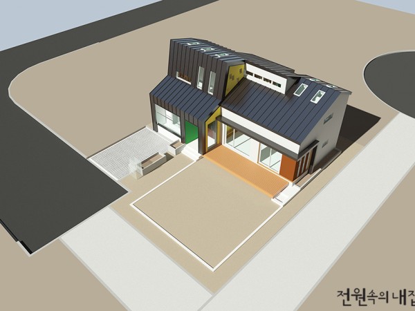 단독주택행을 결심했지만 이내 고민에 빠졌다. 어떻게 집을 지어야 할지 시작조차 막막했기 때문이다. 그런 건축주를 위해 소박한 해결책 하나를 제시한다. 101ROOF 여용진 소장이 제안하는 설계안의 도움으로 집짓기의 첫걸음을 내딛어보자.구성 김연정 자료협조 ㈜일공일룹 101ROOF 가족구성2인 가족 : 출가한 자녀를 둔 부부- 진로상담을 하는 교사 내외- 간간이 집을 방문하게 될 자녀 가족건축주 요구사항현재 주거문화가 아파트 위주이다 보니 설계 의뢰를 하는 대부분의 건축주들이 아파트 생활에 익숙한 것은 필연적이다. 교사로 재직 중인 50대 부부는 직접 단독주택에 세를 얻어 살아본 후, 집을 짓기로 결정하고 디자인을 의뢰하였다. 아파트의 단조로운 평면에서 벗어나 생활에 맞는 합리적인 공간구성과 함께, 간간이 방문하게 될 자녀들의 일시적 잠자리를 해결할 수 있는 공간이 있었으면 좋겠다고 했다.먼저 건축주가 제시한 요구조건들은 아래와 같다.01마당과 텃밭을 가꿀 수 있는 외부공간의 확보(마당과 함께 마당 전면에 텃밭을 작게나마 일굴 수 있는 공간이 확보되길 원함)02예산에 맞는 35평(115.70㎡) 정도의 공간 구성03간헐적으로 이루어지는 집에서의 진로상담에 대비한 공간04주생활 공간은 1층으로, 안방은 보행로와 떨어진 곳에 배치대지환경도심의 택지개발지구 내 위치한 남향의 대지로서, 대지의 서측과 북측을 제외한 2면이 도로로 구성되어 있다. 택지 개발된 각 대지에 건물이 모두 완성되면 좋은 조망을 확보하긴 어렵지만, 남측과 동측이 도로에 접하여 있어 도심 택지 중에서도 양호한 개방감과 일조를 확보할 수 있는 조건이다.건축제한요소- 법률적 제한 최근에 조성되는 택지지구들은 대부분 지구단위계획이 되어 있다(물론 대지의 위치와 주변 환경에 따라 제한하는 내용에 차이가 있긴 하다). 따라서 택지지구 내 토지라면 반드시 사전에 지구단위계획 수립여부와 구체적인 제약사항을 확인해야 할 것이다. 계획대지는 다음과 같은 지구단위계획이 수립되어 있다. ①건폐율 50% 이하, 용적률 80% 이하, 최고층수 2층 이하 ②1필지당 1가구 원칙(다가구주택이나 다중주택은 건축할 수 없음) ③건축한계선[대지경계선과 건축선(도로경계선 등)으로부터 1미터 후퇴] ④경사지붕의 설치. 아울러 건축법에서 제한하고 있는 도로높이제한 및 정북방향일조권 높이제한 규정도 준수하여야 했다.택지 조성상 제한 계획부지는 자동차가 진출입할 수 있는 도로가 남서측면에 6m만 접하여 있다(나머지 도로는 모두 보행을 위한 보도로 구성되어 있다). 따라서 주차장의 위치 및 주출입구의 위치가 제한될 수밖에 없는 토지이다.House Plan대지위치 : 인천광역시 중구 운서동 대지면적 : 283.8㎡(85.8평) 건물용도 : 단독주택 건물규모 : 지상 2층 건축면적 : 89.01㎡(26.93평) 연면적 : 117.97㎡(35.69평)+다락 19.80㎡(5.99평)+발코니 3.96㎡(1.20평)+포치 3.78㎡(1.14평)+데크 21.75㎡(6.58평) 건폐율 : 31.36%(최대 50%) 용적률 : 41.57%(최대 80%) 구조 : 경량목구조 외부마감 : 스터코, 컬러강판 내부마감 : 바닥 - 원목마루, 벽과 천장 - 석고보드 위 벽지 지붕재 : 컬러강판 예상 시공비 : 약 1억8천만원(가구공사, 조경 등 제외)계획방향(배치 및 외부공간과 동선, 실 구성)주차장으로 진출입할 수 있는 위치가 남서측의 8m 도로 쪽으로 제한된 상황에서 주차장은 다른 공간의 위치보다 먼저 결정되었다. 대지면적이 넉넉한지라 직각주차방식(도로에 수직되게 배치)으로 주차장을 확보하여도 큰 문제는 없었다.채광과 일조가 양호한 남향 배치를 기본으로 하여 건축물의 위치를 결정하고, 진출입로는 주차장과 연계하여 사용에 편의성을 더하도록 배치하였다. 잔여 부분의 대지를 마당과 텃밭으로 활용할 수 있도록 계획하였다.매스는 공간 구성을 바탕으로 디자인했다. 다락의 위치와 사용성을 고려한 높이로 비대칭의 박공지붕을 얹어 기본적인 형태를 완성하고, 서재 공간을 입면의 포인트 요소로 사용하여 박공지붕 형태를 변형(꺾음)해 입면을 구성하였다.흰색 바탕에 돌출된 벽 부분만 노란색 스터코로 마감하였다. 현관과 요철부분의 일부는 녹색 스터코로 칠해 입체감을 더하였고, 지붕은 디자인 형태를 가장 돋보이게 표현해 줄 수 있는 재료인 컬러강판을 선택해 모던한 느낌을 살렸다.내부공간계획특수한 조건이 전제되지 않는다면, 남향의 좋은 채광과 일조를 확보할 수 있는 대지는 지금까지 계획하면서 대부분 해를 등지거나 배척하지는 않았다. 물론 이 디자인 역시 그 큰 틀에서 벗어나지 않는다. 대지의 장점을 최대한 살려내는 방향으로 건물의 배치는 남향으로 계획하였고 1층은 부부의 주생활공간을 위주로, 2층은 서재와 다락으로 구성하였다.㈜일공일룹 101ROOF ‘사람과 100년을 함께 하는 공간’을 만들어 나가기 위해 건축주의 현재 삶과 미래의 삶에 대한 고민을 도면에 정성스럽게 담아낸다. 그 삶의 이야기가 오롯이 반영된 집을 디자인하고 현실로 만들기 위해 한 마음으로 정성을 다하여 노력한다. 02-6462-0904, www.101roof.com※ 월간 <전원속의 내집> www.uujj.co.kr 본 콘텐츠의 저작권은 (주)주택문화사에 있으며, 이를 무단 