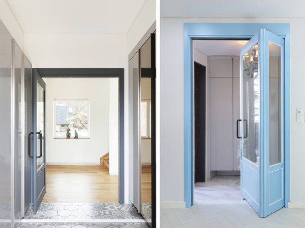 단열, 차음, 먼지 차단 등 기능은 물론 세련된 디자인으로 눈길을 사로잡는 현관 중문 사례를 모았다.HINGED DOOR산뜻한 녹색 컬러 바탕에 골드 손잡이로 포인트를 준 비대칭 양개형 중문. 스트라이프가 도드라지는 플루트라이트 유리를 적용했다.중문 | 인테리어카멜레온 디자인안과 밖 색상을 다르게 입혀, 보는 위치에 따라 다른 느낌을 주었다.중문캡스톤,건축뉴질랜드목조주택(좌)화이트 인테리어를 극대화하는 투명 유리문에 아치로 에지를 살렸다.중문 | 인테리어민 건축인테리어, 건축 스튜디오 도스(우)아치 하부 곡선이 손잡이까지 이어져 독특한 형태의 중문이 완성되었다.중문 | 건축진주 바른인테리어디자인웨인스코팅과 컬러를 맞춰 수납가구와 일체형으로 디자인했다.중문 | 건축블루하우스코리아SLIDING DOOR문턱이 없어 안전한 슬라이딩 도어는 건축주들이 가장 사랑하는 스테디셀러. 센서를 이용해 자동으로 열리거나, 최대한 미니멀하게 꾸미는 것이 요즘 인기다.(좌)중문예림임업(우)중문위드지스,인테리어옐로플라스틱자작나무로 만든 3연동 도어로 고시 위치를 높이고 반투명 망입유리로 공간을 분리했다.중문 | 건축건축사사무소 KDDH면적이 좁은 조건에 특화된 포켓 도어. 벽 속에 숨어 공간 활용도는 높지만, 문 두께와 하드웨어 종류 등을 미리 고려해야 한다.중문 | 건축모루초디자인빈티지한 매력의 중문. 상부 레일과 하드웨어를 노출한 슬라이딩 도어로 열고 닫을 때 묵직함이 또 하나의 포인트다.중문 | 건축단감건축사사무소UNIQUE DOOR한 지붕 두 가족, 듀플렉스 주택 사이에 둔 히든 도어, 중문. 책꽂이처럼 보이는 벽을 밀면 현관을 거치지 않고 이웃집으로 통한다.건축신공간건축사사무소 + 디자인큐브종합건설모자이크 패턴의 자작나무 합판 중앙부를 누르면 폴딩도어처럼 열고 닫을 수 있다.중문 | 건축2m2 건축사사무소냉장고도 너끈히 들어가는 피봇도어와 스윙 폴딩 스타일의 중문(좌)건축서현건설(우)중문엣지게이트,건축홈포인트코리아구성_ 조성일 | 사진_ 브랜드 제공, 주택문화사 DBⓒ 월간 전원속의 내집 / Vol.257 www.uujj.co.kr월간 <전원속의 내집> 의 기사 저작권은 (주)주택문화사에 있습니다. 무단전재, 복사, 배포는 저작권법에 위배되오니 자제해주시기 바랍니다.