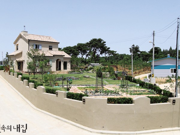 청정한 자연 환경이 건강에 도움을 준다는 상식을 직접 경험해본 사람은 드물다. 복잡한 도시생활 속에서 모두가 여유를 꿈꾸지만 실천에 옮기기는 쉽지 않은 까닭이다. 여기 건강을 위해 전원생활을 실현한 조용권 씨의 마당을 들여다보자. 취재 임수진 사진 변종석 ▲ 길게 뻗은 진입로를 지나면 하얀 대문 위에 자연스런 곡선형의 부드러우면서도 경쾌한 소나무가 손님을 맞이한다. 나무와 잔디가 잘 어우러진 마당에 나란히 디딤석을 깔아 동선을 유도하였다. ▲ 현관 좌우에 소정원을 만들어 계절마다 색색의 꽃을 보는 즐거움을 만끽하도록 했다. GARDEN PLAN 대지위치 : 경기도 가평군 가평읍 대지면적 : 925.68㎡(280평)조경면적 : 826.50㎡(250평)조경설계 : ㈜조경프라자 02-3679-4082 www.cmland.kr 식재 수목 교목류 -에메랄드그린, 반송, 공작단풍(청, 홍), 가브리소나무, 덜꿩나무, 선주목, 둥근주목, 눈주목 등관목류 - 목수국, 불도화, 산철쭉, 줄장미, 수양매화, 노랑조팝나무 등과실수 -매실나무, 자두나무, 앵두나무, 블루베리, 꽃사과, 배나무, 청매실 등지피초화 - 자란, 머위, 참두릅, 꽃잔디, 흰붓꽃, 배풍등, 애기범부채, 구절초, 분홍바늘꽃, 서양양귀비, 인쑥, 거미바위솔, 매발톱, 바이올렛 등 평범한 사람들처럼 서울 시내에서 바쁘게 생활하던 조용권 씨는 건강상의 이유로 가평의 한 요양원에서 넉 달 정도 휴식기를 갖게 되었다. 기대 이상으로 건강이 호전되자 공기 좋은 가평에 거주하기로 결심하였고, 용추계곡 인근에 부지를 구해 바로 겨울공사를 시작했다. 태어나 처음으로 지은 집이었지만 건축공사는 지인을 통해 무리 없이 진행되었다. 주변의 집들과 어우러지는 소담스런 주택이 완공되자 정원을 꾸미는 일이 남았다. 구청 등지에서 여러 업체를 소개받아 이야기를 나누고 견적도 받아보던 중, 풍성하고 깔끔한 디자인으로 소문난 조경프라자와 인연이 닿게 되었다. ▲ 한쪽 소정원 뒤쪽으로는 작은 텃밭을 꾸며 수확이 주는 기쁨을 더한다. ◀ 진입로 좌측에는 앵두, 매실, 자두 등의 유실수를 심어 봄에는 꽃을, 여름에는 과실이 자라는 정원을 만들고자 하였다. ▶ 컨트리 매너 블록과 자연석을 함께 시공해 화단마감 겸 의자로 사용한다. 수간 폭이 넓은 소나무가 넉넉한 그늘을 만들어준다. 마당의 가장 큰 특징은 컨트리 매너(Country Manor) 블록을 사용해 잔디마당을 감싸는 화단을 조성한 것이다. 이 블록은 거친 자연석 같은 질감의 고강도 콘크리트로 제작되어 주변의 분위기에 이질감 없이 녹아 든다. 길게 뻗은 진입부를 제외하면 정방형에 가까운 네모 반듯한 대지에 유선형 화단을 두고 꽃과 나무를 심어 자연스러움을 한껏 살린 것이다. 중앙의 잔디밭을 기준으로 대문과 벤치가 놓인 양 옆으로는 동선을 따라 디딤석을 길게 배치했다. 집 뒤쪽으로는 텃밭을 꾸려 하루에 두 번씩 물을 주는 게 정원주의 중요한 일과가 되었다. 계절마다 색색의 꽃을 피우기 위해 조경작업이 완료된 이후로도 5일장이나 인근의 화원을 꾸준히 방문하며 새로 심고 가꾸느라 그의 하루는 오늘도 분주하다. ※ 월간 <전원속의 내집> www.uujj.co.kr 본 콘텐츠의 저작권은 (주)주택문화사에 있으며, 이를 무단 이용하는 경우 저작권법 등에 따라 법적책임을 질 수 있습니다.