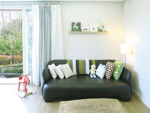 공간을 꾸미고 싶지만, 돈도 시간도 아닌 부족한 인테리어 감각이 가장 큰 문제라면? 재기 넘치는 인테리어 스타일리스트의 손을 빌리는 것도 나쁘지 않다. 인테리어 스타일리스트 ‘플샤스탈린’ 서희진 씨의 넘치지도 모자라지도 않은 스타일링 센스를 엿보기 위해 오래된 남양주 주택단지로 향했다. 취재 정사은 사진 변종석 취재협조 인테리어 스타일리스트 서희진 freecia9834@naver.com▲ 가죽소파에 아기자기한 패브릭 쿠션과 선반을 배치한 거실 ▲ 식탁은 옛 한옥의 툇마루를 그대로 옮겨와 철제 프레임 위에 올려 만들었다. ▲ 아이가 뛰놀기 딱 좋은 크기의 마당 한켠에 할아버지가 손자에게 직접 만들어 선물한 그네가 자리한다. 아파트도 10년쯤 지나면 유행에 뒤처지기도 하고 새로운 컬러로의 치장이 필요하듯이, 주택도 그쯤 지나면 새 옷을 입을 때가 된다. 남양주의 이름난 전원주택 단지인 이곳은 비교적 잘 지어진 곳이라 외관은 특별히 손 볼 필요가 없었다. 이곳으로 막 이사 온 건축주 부부는 외부를 고치기보다는 정원과 인테리어만 취향에 맞게 매만지기로 결정했다. 50평이 조금 안 되는 실내지만 두 층으로 나뉘어 있기 때문에 같은 면적의 아파트보다 널찍한 느낌은 덜하다. 그렇지만 방과 거실이 복도를 중심으로 분리되어 있어 짜임새 있는 공간 배치가 돋보인다. 1층은 캘리그래피 디자이너인 남편의 작업실과 거실, 주방을 만들고 2층은 부부의 침실과 미니 거실, 그리고 막 걸음마를 시작한 아이 방으로 꾸미기로 했다.▲ 연한 파스텔톤으로 단장한 싱크대와 원목으로 만든 노출형 선반 위에서 신혼시절 마련한 주방살림이 제 자리를 찾았다. ▲ 나무와 식물을 활용한 벽면장식이 돋보인다. / 간결한 선반 위 놓인 액자와 소품 /거실 너머로 보이는 마당 풍경 ▲ 거실 모서리에 난 창으로 마당 풍경이 한 눈에 들어온다. 원목과 파스텔톤 벽지, 커튼과 소품을 이용한 아기자기한 인테리어가 집 전체에 사랑스러운 느낌을 더한다. ▲ 보조주방과 주방 사이 폴딩으로 열리는 프렌치도어를 설치해 공간을 자연스럽게 분리했다. 부부는 합리적이고 실용적인 북유럽스타일을 추구하되 이전에 사용하던 가구를 최대한 버리지 않고 재활용하는 쪽으로 방향을 세우고 인테리어 스타일리스트 서희진 씨와 손을 잡았다. 스칸디나비아 스타일이라 불리는 북유럽풍 디자인은 최근 젊은 건축주와 신혼부부 사이에서 인기가 높다. 원목 사용을 기본으로 하되 나무 자체의 물성을 살리면서도 군더더기 없는 디자인과 둔탁하지 않은 경쾌한 디자인이 특징이다. 디자이너는 편안하고 안락한 분위기를 만드는 것을 우선으로 화이트를 주조색으로 선택하고 파스텔 색조 데코월을 포인트로 삼았다. 요즘 젊은 부부들은 페인트 마감을 선호하지만 이 집에는 사용되지 않았다. 서희진 씨는 바로 어린아이 때문이라며 그 이유를 밝힌다. “아무리 친환경이라 해도 주 원료가 화학성분이기 때문에 아이가 있는 집에서는 벽지를 사용하는 편이 좋습니다. 요즘에는 패브릭 느낌이 나는 벽지나 부드러운 모노톤 벽지가 시중에 많이 유통되고 있어 일반인도 쉽게 구할 수 있어요. ” 체리빛 필름지로 덮여있던 데코월, 몰딩 등을 모두 걷어내고, 기본 화이트 컬러에 질 좋은 원목가구와 컬러풀한 원단을 부분적으로 사용해 공간에 편안한 느낌을 더하고 아기자기한 소품을 곳곳에 두어 사랑스러운 느낌을 냈다. 추가로 치장된 목재의 선택 또한 과하지 않으면서도 결이 드러나도록 치목된 것을 사용했다. 편안한 인테리어에는 조명도 한 몫 하는데, 과하지 않은 조명들은 집안을 은은하게 밝히며 따뜻한 분위기를 낸다. 아이가 뛰어다니는 거실과 주방 바닥에는 부딪힐만한 물건을 모두 치워 안전한 환경을 만드는 것도 잊지 않았다. ▲ 캘리그래피 디자이너인 남편을 위해 현관 복도의 왼쪽에는 프라이빗한 작업실을 만들었다. ▲ 패브릭 패턴이 잘게 프린트되어 있는 벽지를 사용해 부드러운 느낌을 낸 안방. 침대 머리맡 소품 배치와 데코레이션은 모두 스타일리스트 서희진 씨의 제안이다. ▲ 2층 화장실 입구의 작은 공간으로 세면대를 따로 설치해 물 사용을 편리하게 했다. 작은 원형타일을 시공해 공간에 청량감을 더한다. / 몇 가지 소품과 배치 변경만으로 젊은 감각이 물씬 풍기는 상쾌한 공간으로 탈바꿈한 욕실 /1층 남편의 작업실로 향하는 복도. 오른쪽에는 데크로 나가는 슬라이딩 도어가 있고, 왼쪽에는 2층으로 오르는 계단실이 자리한다. ▲ 계단실에는 원래 없던 중문을 달았는데, 이는 헌 문짝을 재활용해서 만들어졌다. / 계단 끝에는 아이의 안전 위해 슬라이딩 가드가 설치되어있다. 2층 거실은 해가 깊게 들어 온종일 따뜻하다.▲ 아이방에 꾸며진 행거와 소품들은 아기자기하고 사랑스럽다. 옛 주택을 정리해 구조변경 없이 사용하기로 하면서 비용을 줄이고, 신혼 때 마련한 가구를 그대로 가져와 추억도 그대로 서린 인테리어를 완성했다. 낡은 주택을 손봐 거취를 옮긴 젊은 부부는 반짝거리는 화려함보다는 소박하고 아늑한 집을 택했다. 그들이 원하는 모습대로 다시금 태어난 주택에서 이제 아이의 웃음